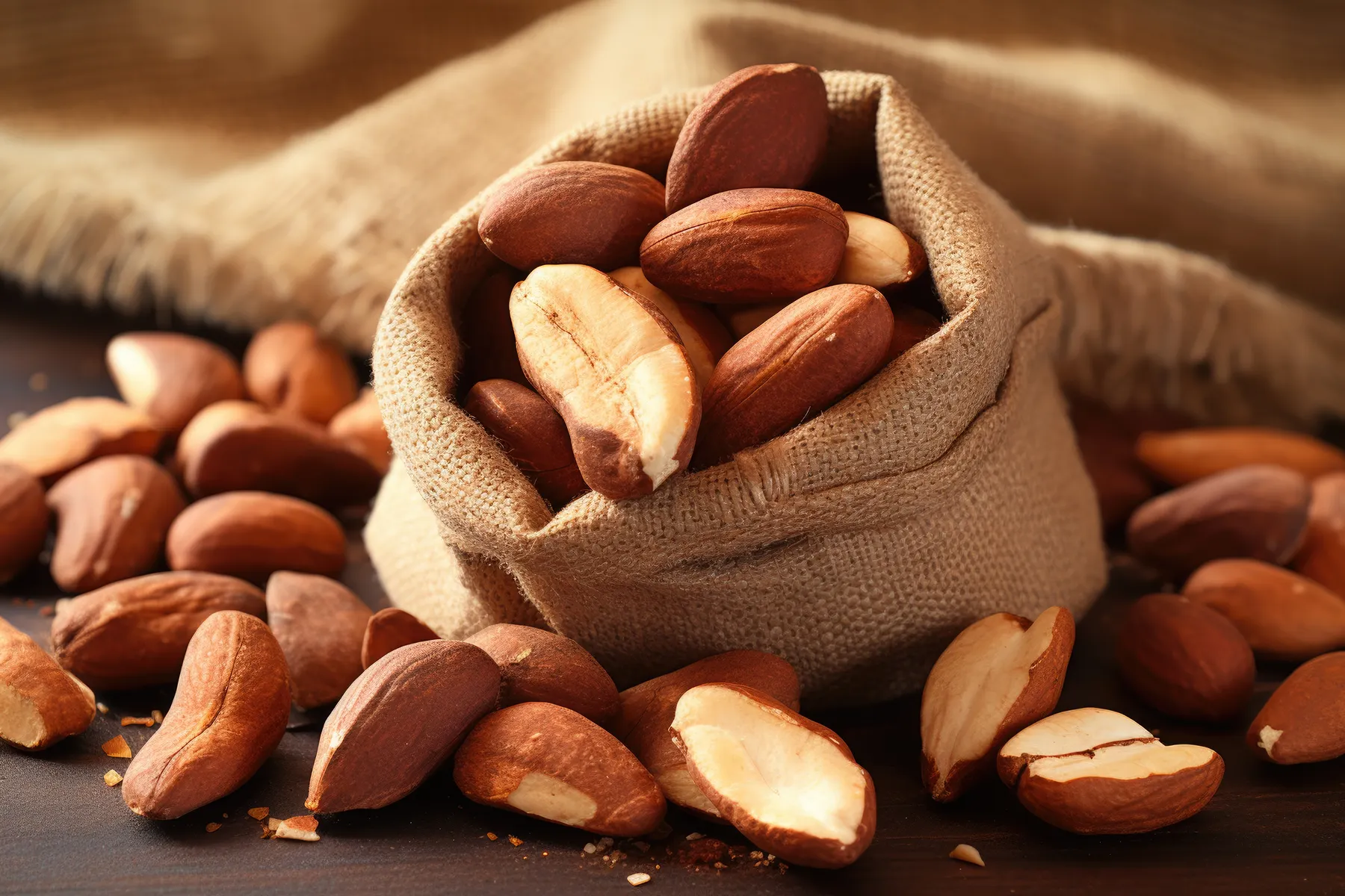Jednym z roślinnych źródeł selenu mogą być orzechy - brazylijskie, laskowe czy nerkowca (3). Orzechy brazylijskie znane są z tego, że w nich znajduje się najwięcej selenu spośród innych orzechów (2). W 100 g orzechów brazylijskich jest 280 µg selenu - oznacza to, że zaledwie 15 g tych orzechów dziennie może pokryć zapotrzebowanie na selen (7).